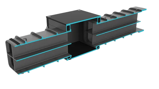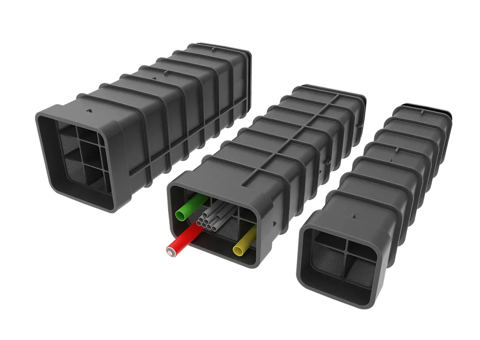 Sterke kunststof multikoker met meerdere compartimenten. Beschermt kabels overzichtelijk, creëert ondergrondse ordening en voorkomt graafschade. Geschikt voor o.a. spoor, tunnels, stedelijke bouw, datacenters en energieverdeelstations.