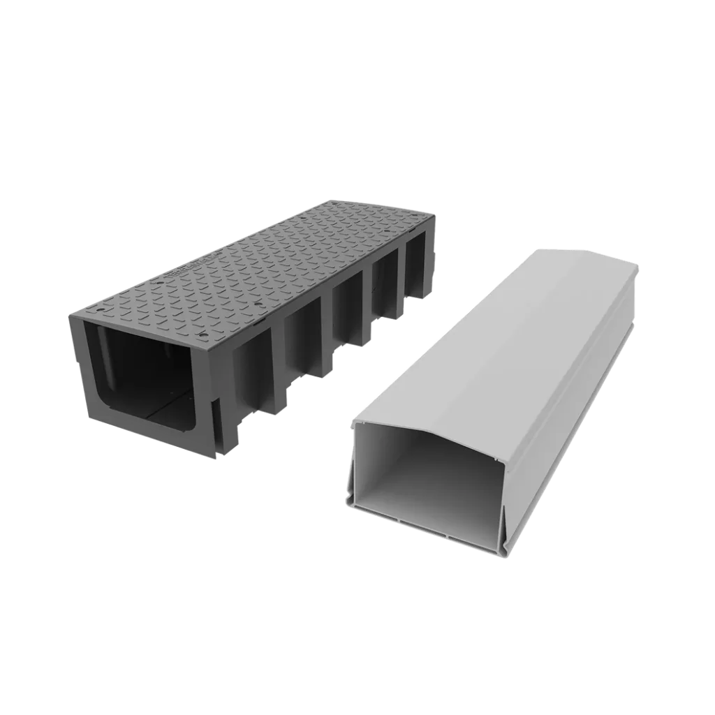 - SmartTray Ultim: Eine leichte, recycelte Kunststoffalternative zu Betonrinnen, die sich leicht eingraben lässt.