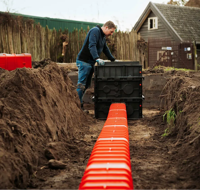 L'Utilis multi sleeve permet de faire passer les câbles dans le sol de manière sûre et claire. Les compartiments séparent les câbles et évitent les dommages. Le système est idéal pour les projets ferroviaires, les centres de données, les infrastructures de recharge, les projets énergétiques et les zones urbaines où l'espace est limité.