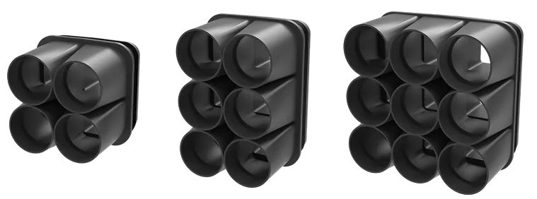 Gagnez jusqu'à 40 % d'espace par rapport à des tubes de gaine séparés. Avec 4, 6 ou 9 compartiments, vous posez plus de câbles qui occupent moins d'espace précieux sous terre.